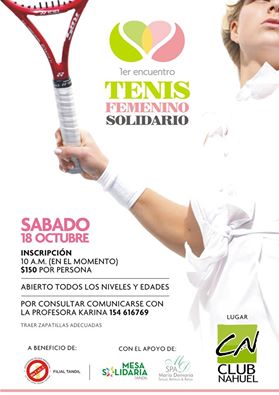 El denominado “Primer Encuentro de tenis Femenino Solidario” quedó programado para el próximo sábado en las canchas ubicadas en Club Nahuel.